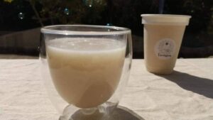 ファーメラの甘酒に豆乳ヨーグルトと旬のオーガニックフルーツをブレンド。